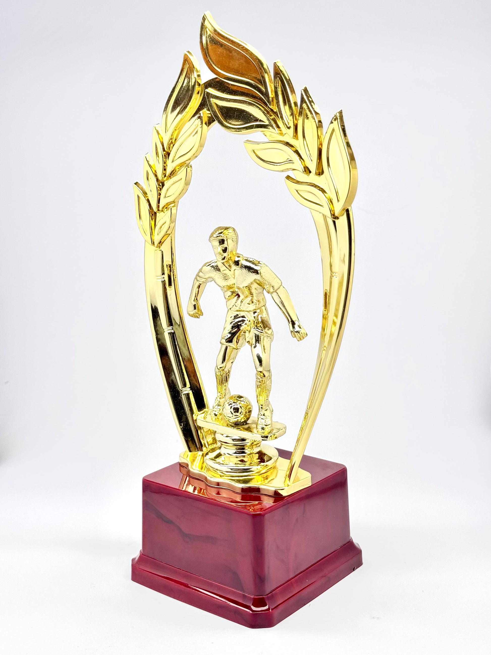 احتفل بالنصر بأناقة مع كأس كرة القدم الذهبي، جائزة رائعة مصممة لأبطال كرة القدم. تتميز بتصميم متحرك للاعب كرة قدم فوق كرة قدم ذهبية واقعية، محاطة بأوراق غار أنيقة - رمز خالد للإنجاز والشرف. قاعدة من الرخام الأحمر النابض بالحياة تضفي لمسة فاخرة، مما يجعلها مثالية للبطولات، وأيام الرياضة المدرسية، ودوريات الشركات، وجوائز كرة القدم للشباب.