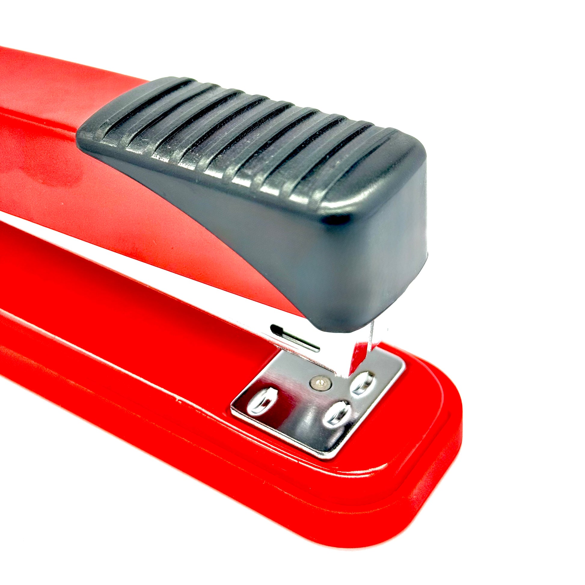 This Heavy-Duty Red Desktop Stapler is built for both performance and style. With a bold red metal body and a textured black grip, it offers precision stapling and a comfortable, slip-free experience. Ideal for office, school, or home use, this stapler handles everyday paper binding tasks with ease.